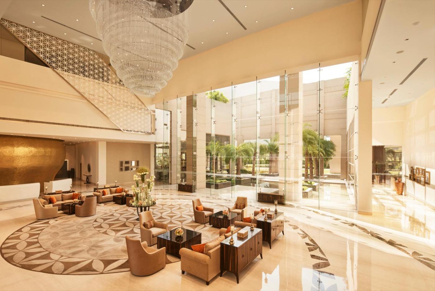 Club King Room with Lounge Access & One Way Railway Station Airport Transfer.. This double room has a bathrobe, tumble dryer and air conditioning. 40 Inches smart TV It has carpet flooring, writing table, Forest Essential products, fresh fruits, access to club lounge. ;