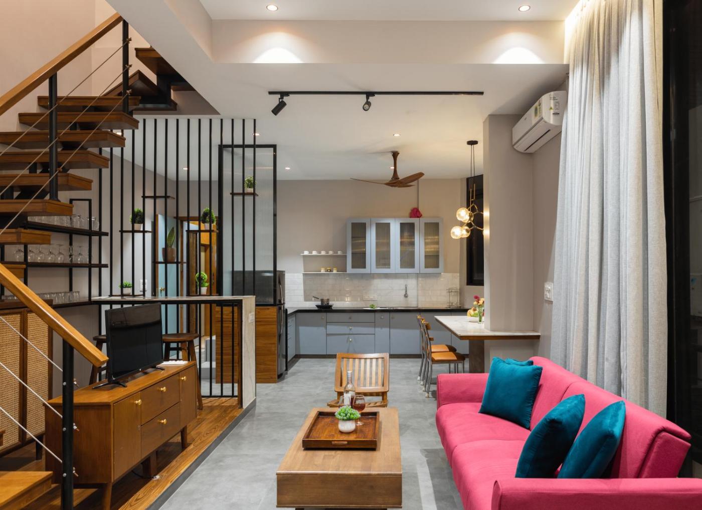 Located in Lonavala, Seven Sands I Oak Wood I Pvt Pool - 2 BHK Duplex provides accommodation with private pool, free WiFi and free private parking for guests who drive. The air-conditioned accommodation is 2.3 km from Kune Falls. Staff on-site can arrange a shuttle service.