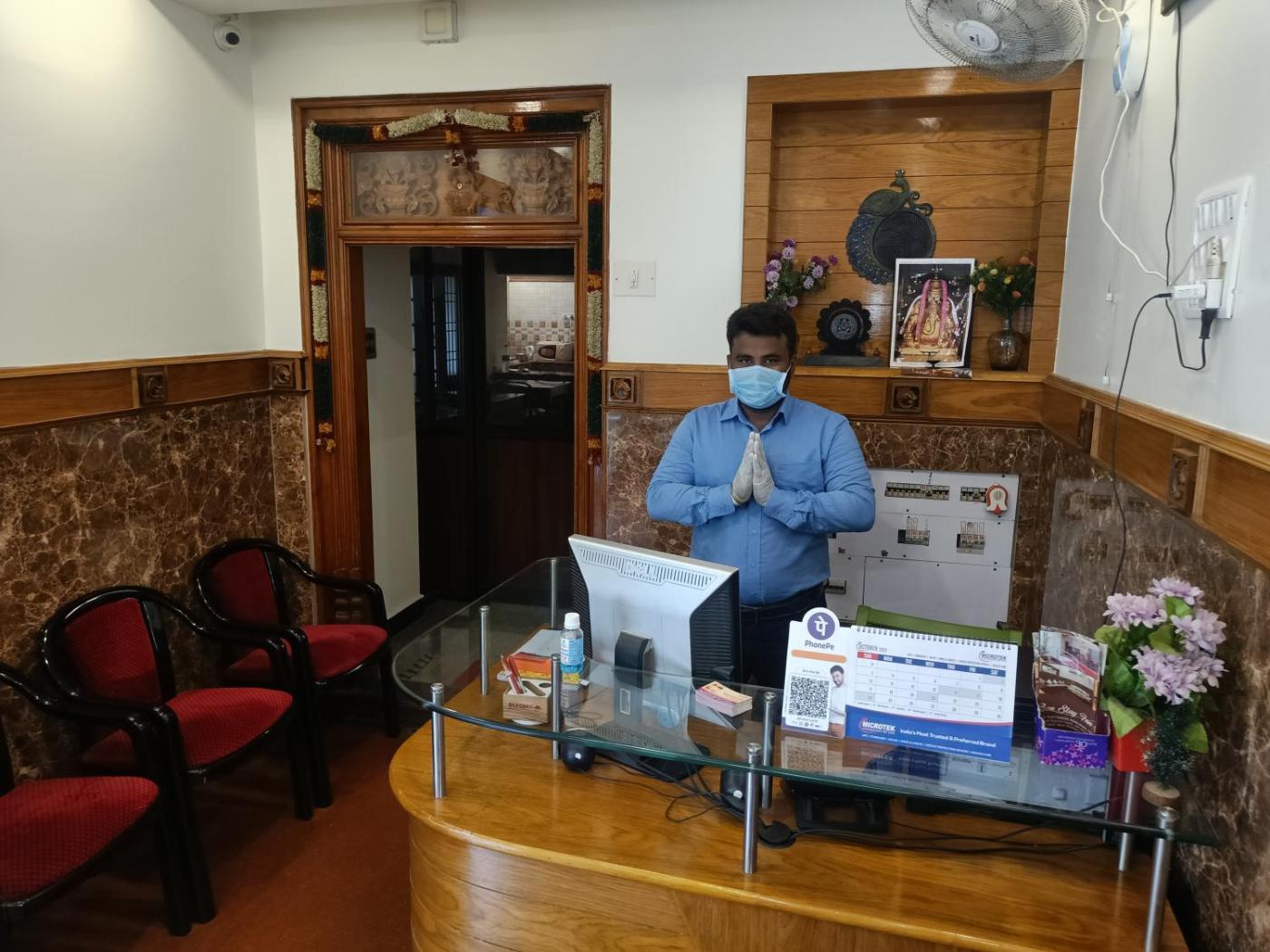 Staff speak English, Hindi and Tamil at the reception.