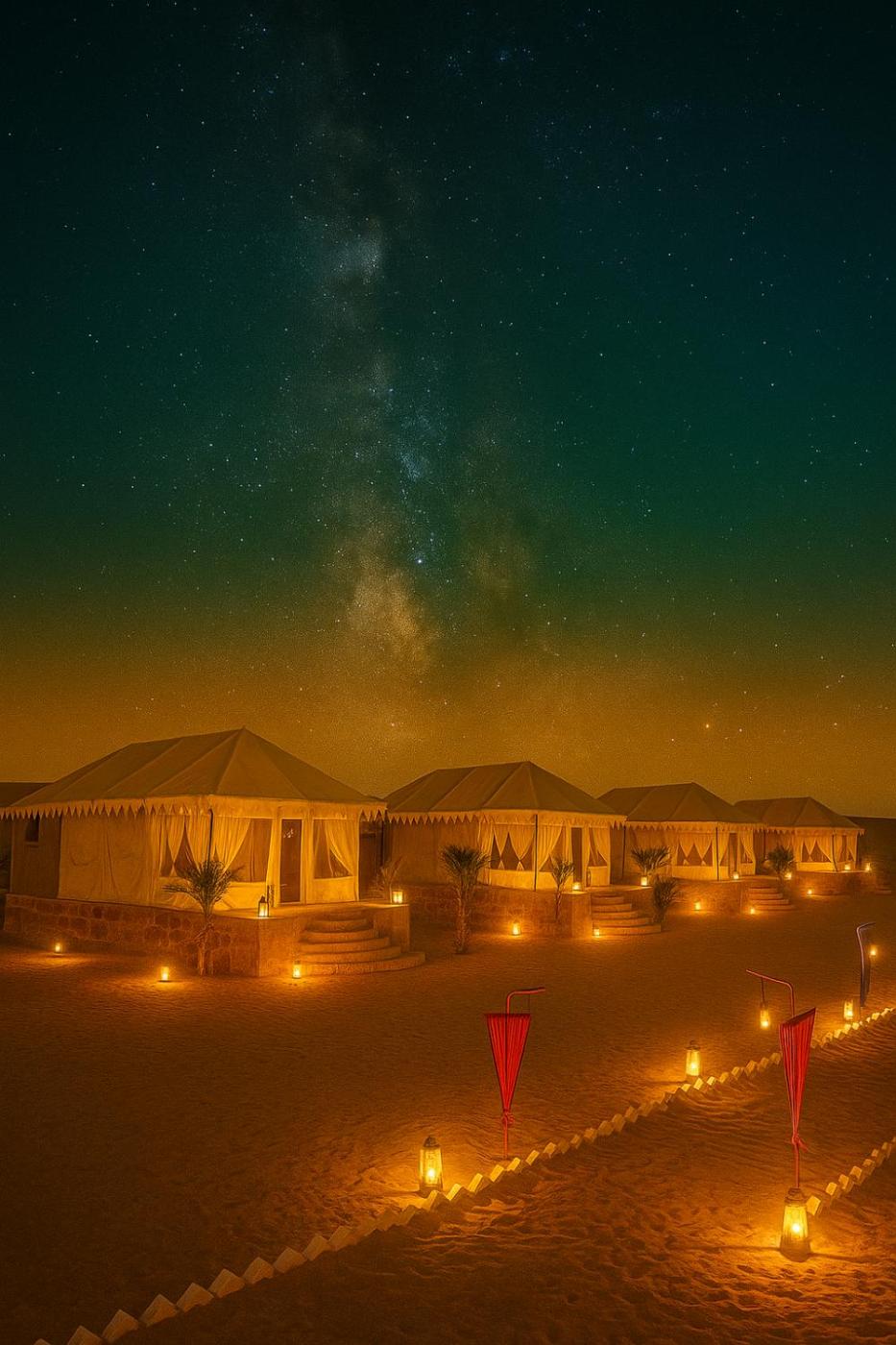 Located in Sām, 40 km from Jaisalmer Fort, Morocco Luxury Camp Sam provides accommodation with a garden, free private parking, a terrace and a restaurant. Featuring a bar, this 5-star resort has air-conditioned rooms with a private bathroom. The resort features an indoor pool, hot tub, nightclub and a shared kitchen.