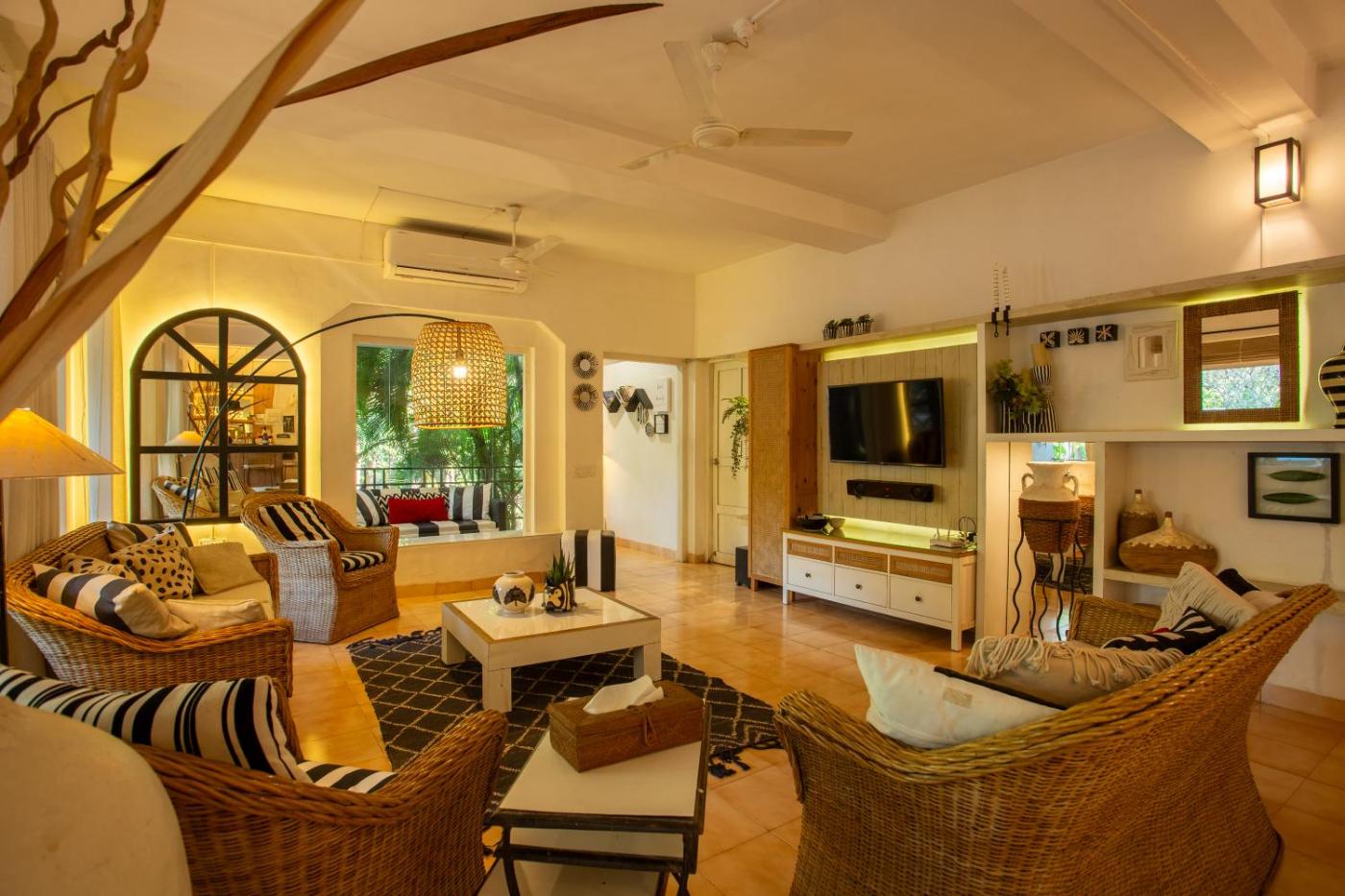 Boasting pool views, the spacious villa features a flat-screen TV with streaming services, air conditioning, a seating area, an outdoor furniture and 6 bathrooms. A private entrance leads gueststhe villa,they can enjoy some wine or champagne and fruits. The villa offers bed linen, towels and housekeeping service.